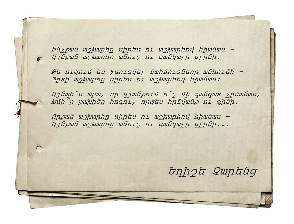 Եղիշե Չարենց, հարազատ մարդ, ծնունդդ շնորհավոր: